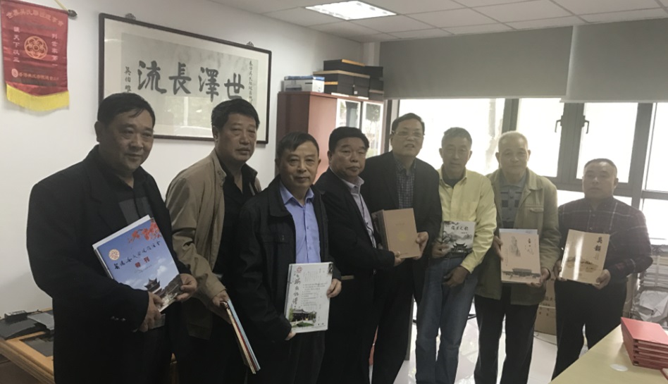 2017年11月3日,江西省吳氏宗親總會顧問吳萍如(筆名大成)、豐城市吳氏文史研究會即豐城吳氏宗親會吳義新會長、副會長吳紹輝、吳成勝、吳北榮一行五人到訪無錫吳氏祖地宗親會。受到無錫吳氏祖地宗親會吳仁山會長熱情接待!同時陪同接待豐城宗親的有泰伯吳氏祖地宗親聯誼總會顧問吳士德。以及無錫吳氏祖地宗親會吳敏副會長、吳樂一秘書長、常務理事吳建東。