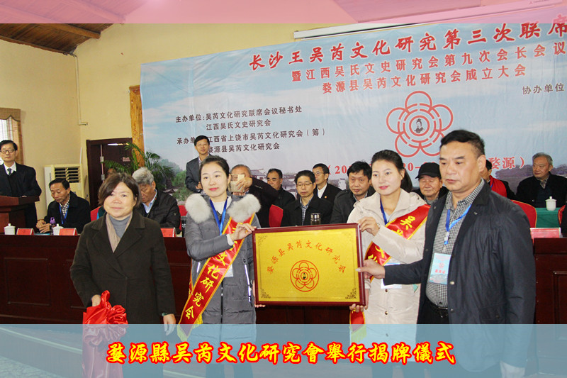 在與會人員的共同見證下,婺源縣政協(xié)主席汪春萍和江西吳氏文史研究會會長吳廣凡為婺源縣吳芮文化研究會舉行揭牌儀式。