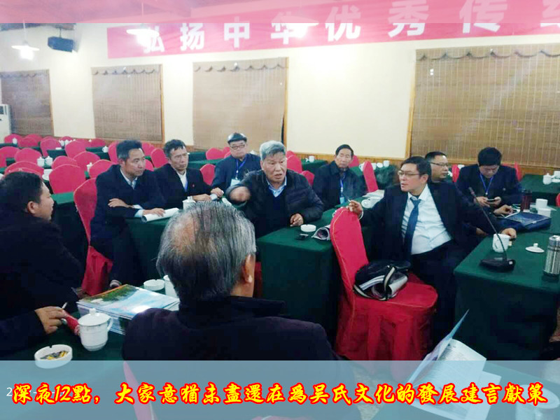 文史專家吳恩培、吳超來、吳本立、吳長庚、吳大行以及蘇州吳氏文化研究中心主任吳永敏、江蘇宿遷市至德文化研究會(huì)會(huì)長吳良軍,先后就弘揚(yáng)吳文化、吳芮文化研究的意義闡述了自己的觀點(diǎn),專家們的精彩發(fā)言博得了全場陣陣掌聲。令人感動(dòng)的是,來自湖南的吳興勇,他是湖南社科院的研究員,著名翻譯家,著作等身,今年78歲高齡,雖然白發(fā)蒼蒼,但是精神矍鑠,他對(duì)吳文化獨(dú)到的見解令人欽佩。