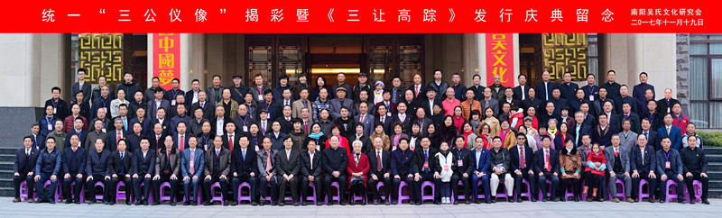 今天,吳氏族人的“廈門共識”已美夢成真;“南陽實踐”已隆重而莊嚴(yán)地向天下吳氏和社會宣示:具有歷史依據(jù)、符合歷史邏輯、嚴(yán)謹(jǐn)規(guī)范的“三公”儀像,已經(jīng)玉成其事,隆重揭彩。這是一件吳氏史上的重大事件,是吳氏史上的歷史豐碑。她表達了海內(nèi)外四千萬吳氏族人的共同愿景,實現(xiàn)了大家的共同期待;這是我們踐行至德精神的一次偉大實踐。