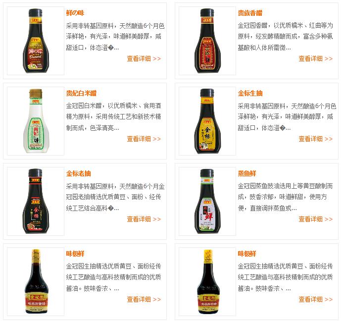 公司秉承“以質(zhì)量求生存、以信譽(yù)求發(fā)展、以市場為導(dǎo)向、以服務(wù)為己任”的企業(yè)宗旨。 堅持以“創(chuàng)新、創(chuàng)優(yōu)、創(chuàng)名牌”的發(fā)展理念,經(jīng)過多年來的不斷努力,先后通過ISO9001國際質(zhì)量管理體系認(rèn)證,HACCP食品安全管理體系認(rèn)證,ISO14001環(huán)境管理體系認(rèn)證和QS認(rèn)證。在全國同行業(yè)中,成為首批獲得國家質(zhì)量安全生產(chǎn)許可證的企業(yè)之一,獲得“07年中國質(zhì)量500強(qiáng)”、“省級衛(wèi)生A級單位”、“國家質(zhì)量達(dá)標(biāo)食品”、“質(zhì)量第一,誠信經(jīng)營企業(yè)” 、2002年“金冠園”醬油被授予“國家免檢產(chǎn)品”稱號;獲得2003-2004第十叁屆中國廚師節(jié)指定調(diào)味品稱號;同時公司也注重品牌建設(shè),“金冠園”牌先后獲得“中國馳名商標(biāo)”、“中國星火計劃項目”、“全國食品工業(yè)龍頭食品企業(yè)”、“食品衛(wèi)生A級單位”、“中國名牌產(chǎn)品”、“中國星火計劃產(chǎn)品”、“工商企業(yè)信用良好企業(yè)”、省市“先進(jìn)企業(yè)”等榮譽(yù)稱號。產(chǎn)品暢銷全國各地并大量出口,深受廣大消費(fèi)者青睞。