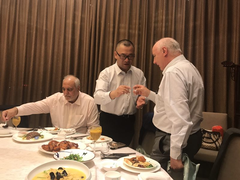 晚上,由福建宗親會吳健龍宗長做東,宴請英國蘇格蘭一行客人。由無錫吳氏祖地宗親會會長吳仁山宗長、申錫機械有限公司總經理吳杰宗長、吳樂一宗長、吳敏宗姐陪同。在宴席中,英國蘇格蘭中國國際協(xié)會副會長Ernesto Esposito介紹他自己是成吉思汗鐵木真的后代,這次是來無錫祖地尋根的。