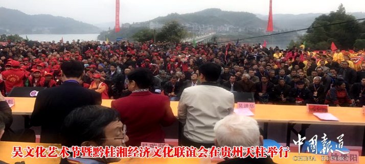 中國報(bào)道訊(記者吳蜀豐特約撰稿 吳建東)2017年11月11日,細(xì)雨綿綿,有吳敏付會(huì)長代表無錫吳氏祖地宗親會(huì),參加2017年貴州天柱吳文化藝術(shù)節(jié)暨今黔桂湘三省邊經(jīng)濟(jì)文化聯(lián)誼會(huì)。這次盛會(huì)有兩千多吳氏宗親參加。無錫吳氏祖地宗親會(huì)吳敏副會(huì)長受到當(dāng)?shù)刈谟H會(huì)熱情歡迎。當(dāng)?shù)睾枚嘧谟H還不知道無錫是泰伯吳氏祖地。