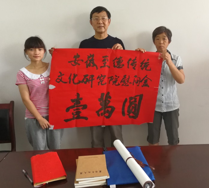 前不久,安徽至德傳統(tǒng)文化研究院暨安徽省吳氏宗親總會在德良顧問 瑞賢秘書長帶領(lǐng)下,一行懷揣一份火熱,將安徽和瑞濾網(wǎng)布公司吳瑞董事長、合肥市北宸農(nóng)業(yè)科技發(fā)展有限公司永文董事長、合肥眾誠印務(wù)公司文東董事長、淮南市農(nóng)林科技開發(fā)公司法人代表吳本兵、已經(jīng)進入九華山寺廟修行的吳紅旗宗長(法名釋永果)的拳拳愛心帶到金寨山區(qū)桃?guī)X龍?zhí)洞澹繂柨忌习矐c師范大學的優(yōu)秀特困生麗麗同學,給她送去一份溫暖寄去一片深情。同日,六安市至德文化聯(lián)絡(luò)處吳昌宗等領(lǐng)導(dǎo) 大別山吳文化研究協(xié)會吳成銘會長等對特困生麗麗進行了慰問和捐助。龍?zhí)洞鍍晌嘧拥娜w領(lǐng)導(dǎo)參加了捐贈儀式。