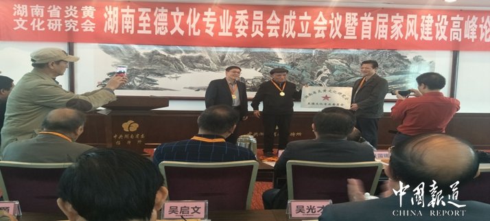 中國報(bào)道訊(特約采編 吳梅)湖南省炎黃文化研究會(huì)主辦的湖南至德文化專業(yè)委員會(huì)成立暨首屆家風(fēng)建設(shè)高峰論壇今日(11月22日)在湖南省省委招待所舉行,來自貴州、江西、湖北、江蘇、懷化、婁底、永州、郴州、長沙、衡陽等地60余名專家學(xué)者參加了會(huì)議。