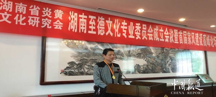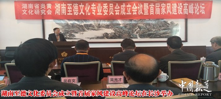 中國報(bào)道訊(特約采編 吳梅)湖南省炎黃文化研究會(huì)主辦的湖南至德文化專業(yè)委員會(huì)成立暨首屆家風(fēng)建設(shè)高峰論壇今日(11月22日)在湖南省省委招待所舉行,來自貴州、江西、湖北、江蘇、懷化、婁底、永州、郴州、長沙、衡陽等地60余名專家學(xué)者參加了會(huì)議。