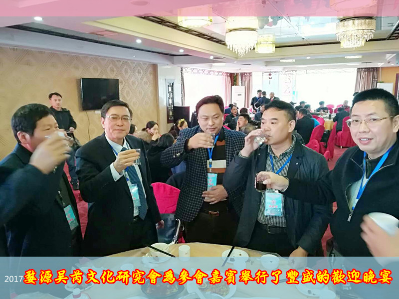 晚上6時(shí),在華逸大酒店二樓宴會(huì)廳,婺源吳芮文化研究會(huì)為參會(huì)嘉賓舉行了豐盛的歡迎晚宴,大家頻頻舉杯,暢談甚歡,祝愿中華吳氏興旺發(fā)達(dá),祝福偉大祖國(guó)繁榮昌盛。