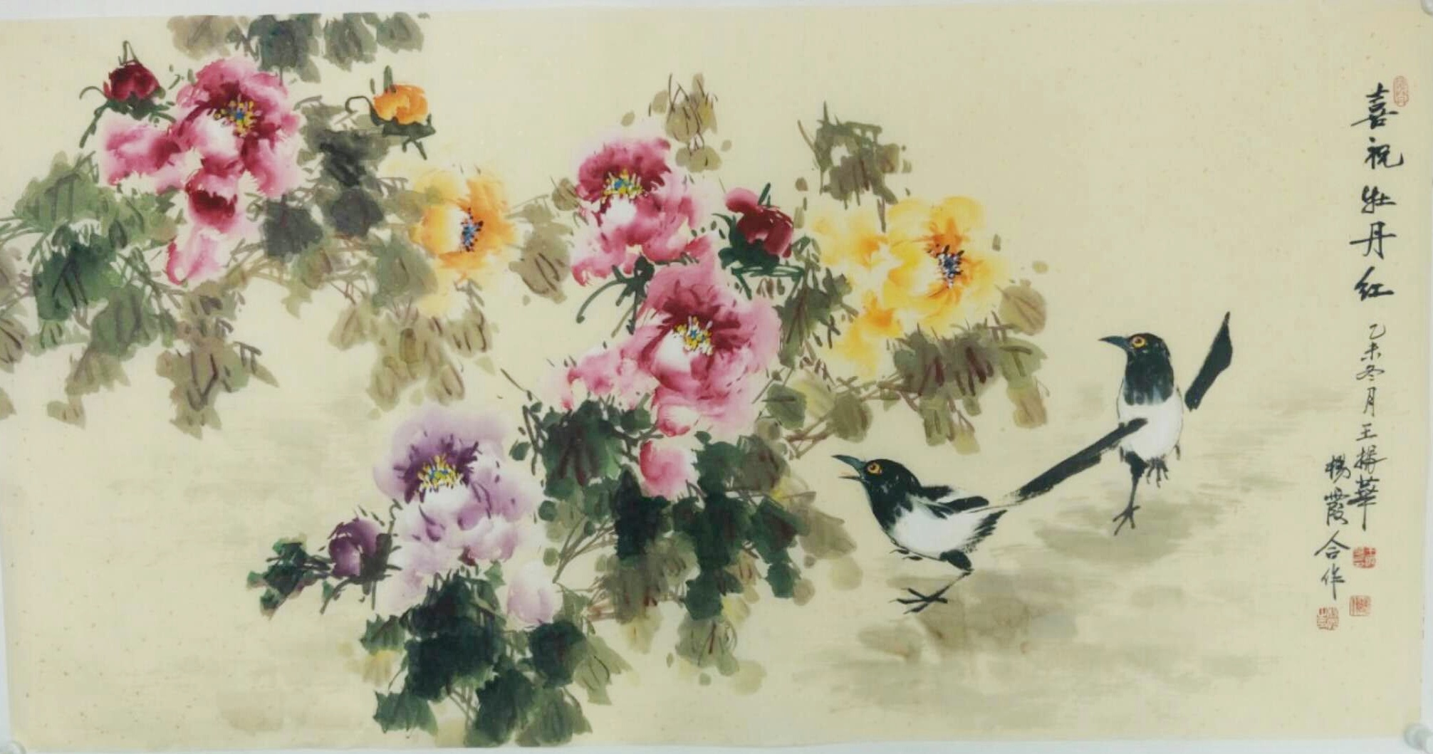 振華先生在繪畫事業(yè)中,始終秉承齊白石大師畫風(fēng),追求遺貌取神,師心不蹈跡,將大師的藝術(shù)風(fēng)格融進自己的創(chuàng)作中。因此,他的畫技全面,既能精雕細琢,又能揮筆寫意。這些年來振華先生出名后,他已經(jīng)舉辦了大小個人畫展十四次之多。有專家稱他的作品“繼承和發(fā)揚了齊派藝術(shù)特色,并融入了現(xiàn)代繪畫技法,雅俗共賞。”齊白石的嫡孫、我國著名畫家齊靈根先生曾為振華先生的作品《墨蝦圖》欣然題字:“振華先生畫蝦,用筆用墨有齊派風(fēng)度,功夫極深,構(gòu)圖亦有創(chuàng)新,冰凍三尺非一日之寒。”得到名家大師的肯定,對振華先生來說無疑是莫大的鼓舞,更深諳“百尺竿頭須進步,十方世界是全身”的教誨。逐漸形成了自己的風(fēng)骨和獨家技巧。今天他的名氣也隨著喜鵲“飛”出沈陽、關(guān)東、全國、乃至世界各地。2011年創(chuàng)作的《喜鵲繞地球》,被加拿大一位來遼寧談生意的客商以5萬美金買走,創(chuàng)下振華先生畫作的新記錄。遼寧衛(wèi)視還特別錄制了長達20分鐘的專題片《華彩丹青——王振華》播放!使之王振華名聲日隆,各省市領(lǐng)導(dǎo)和企事業(yè)朋友都力邀其進行書畫交流時,都要帶上大弟子“龍女牡丹”楊霞開闊視野。近年來,在振華悉心指導(dǎo)與諄諄教誨下楊霞也屢獲佳績,在遼沈畫壇也小有名氣。