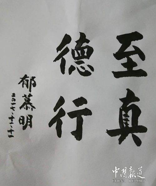 中國報道訊(記者吳蜀豐)2017年10月14日,臺灣新黨主席郁幕明前往廣東省湛江市訪問世界至德總會,世界至德總會董事局主席吳希民熱情接待并向郁幕明主席介紹了世界至德總會近幾年來發(fā)展情況及所取得的成績,吳希民說,《世界至德總會董事局在完成《中華吳氏大統(tǒng)宗譜》之后目前正在編撰《世界至德禮儀大典》,該大典工作量大,郁主席對至德的工作給與高度贊賞,表示新黨愿與世界也是中國最大的民間社團建立友好往來,共同為祖國統(tǒng)一做出積極貢獻。臺灣新黨郁慕明主席在廣東湛江給世界至德總會題詞:至德真行!題詞可有四種讀法:至德真行;至真德行;德至行真;真行至德。給世界至德總會予相當高的評價。