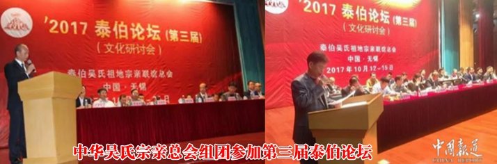 中國(guó)報(bào)道訊(記者吳蜀豐特約采編 吳謹(jǐn)程)金秋十月,丹桂飄香。繼2016年元月份在僑鄉(xiāng)泉州舉辦的第二屆泰伯論壇之后,2017年10月13日 泰伯論壇第三屆在吳氏祖地?zé)o錫梅里舉辦,中華吳氏總會(huì)吳文富主席率中華吳氏各地宗親代表團(tuán)參會(huì)。