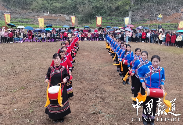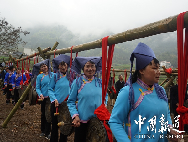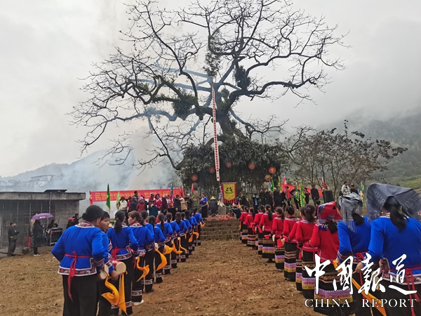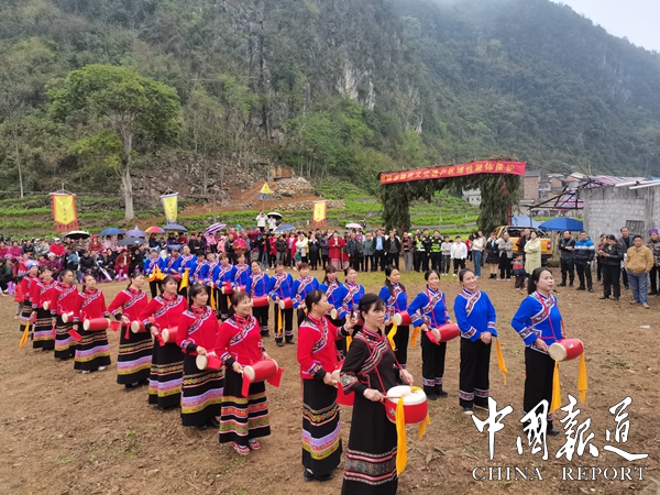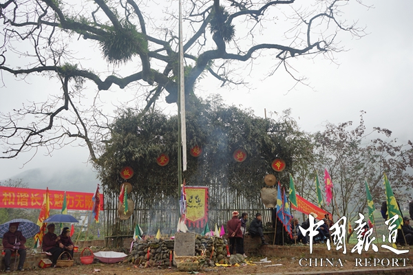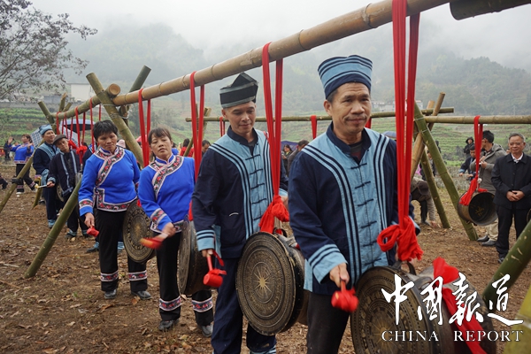 中國報道訊(通訊員 岑福山) 陽春三月,春暖花開。3月10日,廣西東蘭縣國家4A景區(qū)長樂宮,長樂鎮(zhèn)板登村在景區(qū)舉行隆重的一年一度螞拐節(jié)(也叫蛙婆節(jié))活動,吸引國內(nèi)外游客和專家前來參加活動,感受當?shù)厣衿婀爬系膲炎迕褡逄厣幕?。東蘭縣委常委、辦公室主任黃義,縣鎮(zhèn)有關(guān)領(lǐng)導,廣西岑氏宗親會、英國華僑、廣東、貴州、福建、浙江等省有關(guān)游客、專家一起參加活動。