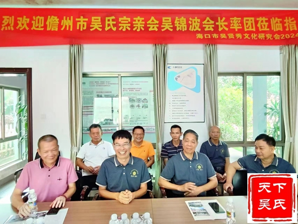 本次交流學(xué)習(xí)的儋州市吳文化研究會(huì)代表:吳勇 儋州市吳文化研究會(huì) 高級(jí)顧問,吳錦波 會(huì)長,吳煥光、吳顯福常務(wù)副會(huì)長,吳運(yùn)才常務(wù)副會(huì)長兼秘書長,吳尚茂監(jiān)事長,辦公室主任,吳以良、吳小八,吳廷福副會(huì)長,吳天祥后勤部長。