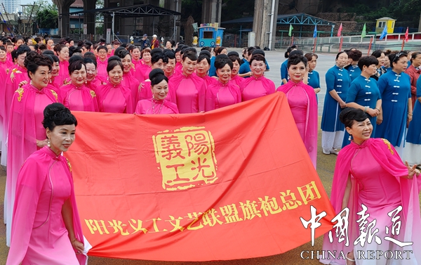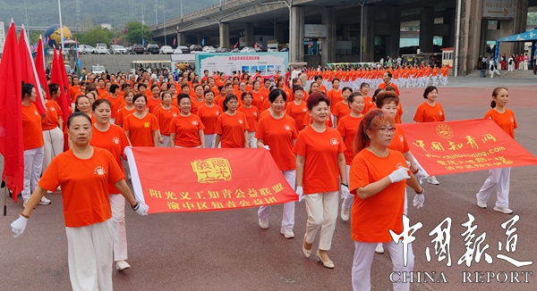 陽(yáng)光義工愛心聯(lián)盟組委會(huì)會(huì)長(zhǎng)李永寧,重慶北上廣健康科技有限公司董事長(zhǎng)汪華先后致辭,總指揮伍培夢(mèng)在臺(tái)上宣布第九屆達(dá)人秀開幕式正式啟動(dòng),中國(guó)愛心健康大使全國(guó)總冠軍胡艾蓮演唱《有你真好》。開幕式上還舉行北上廣健康產(chǎn)業(yè)啟動(dòng)剪彩儀式,旗袍演展、太極拳演展、知青公益總團(tuán)方陣展示、文藝方陣展示:陽(yáng)光義工●北上廣服務(wù)團(tuán)方陣展示,各方隊(duì)參加演出2500余人次。