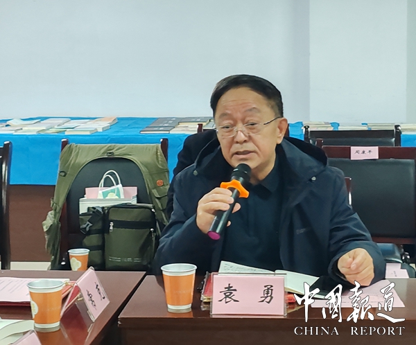 重慶市散文學會副會長袁勇介紹《巴渝文韻-重慶市散文學會三十年優(yōu)秀作品精選集》編輯情況