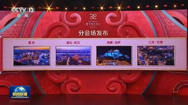 中央廣播電視總臺《2025年春節(jié)聯(lián)歡晚會》官宣分會場花落重慶、湖北武漢、西藏拉薩、江蘇無錫四地后,迅速引發(fā)社會熱議,眾多網(wǎng)友評論說“今年春晚就在家門口,真驕傲”“燈火璀璨,一整個期待住了”“有我一直想去打卡的城市!”…