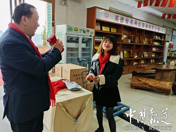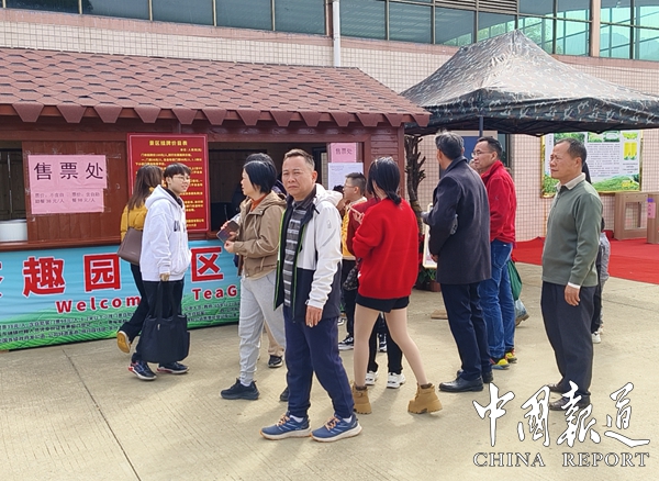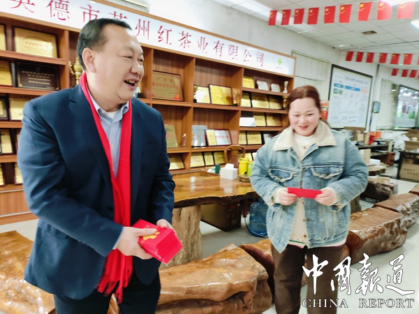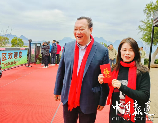 英洲紅董事長(zhǎng)黎沛德在茶趣園景區(qū)慰問員工