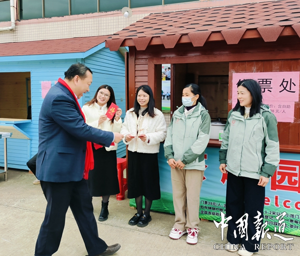 1月29日,正月初一,在這個(gè)闔家團(tuán)圓的日子里,廣東英洲紅農(nóng)文旅科技股份有限公司董事長(zhǎng)黎沛德深入久負(fù)盛名的茶趣園景區(qū),親切慰問堅(jiān)守在一線崗位的員工,為他們送去新春的祝福與關(guān)懷。熱情握手、親切交談,拱手拜年。