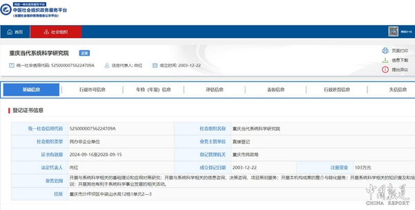 成立時間:經(jīng)重慶當代系統(tǒng)科學研究院渝系統(tǒng)科學院【2024】2號文件批復,于2024年7月正式成立。