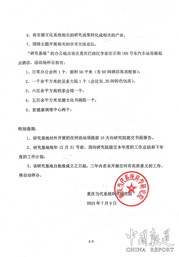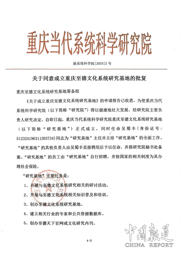 綜上所述,重慶至德文化系統(tǒng)研究基地是一個在至德文化系統(tǒng)研究領域具有重要地位和影響力的機構(gòu),其通過系統(tǒng)化研究、學術(shù)交流、宣傳推廣等多種方式,致力于傳承和弘揚中華優(yōu)秀傳統(tǒng)文化,在至德文化系統(tǒng)研究領域取得了顯著成果,為推動社會主義文化強國建設作出貢獻。(圖文/吳天下)