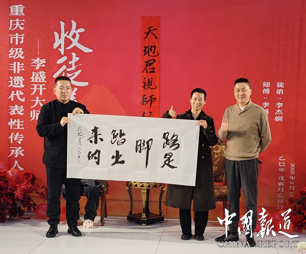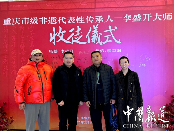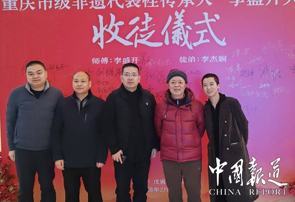 2月15日,重慶非遺傳承人李盛開(kāi)在渝北區(qū)喜宴天下大酒樓收李杰嫻為徒迎來(lái)重慶各界人士熱烈祝賀。重慶非遺傳承人李盛開(kāi)是重慶市級(jí)非遺川菜代表性傳承人,專(zhuān)注于非遺川菜“重慶脆皮魚(yú)”的傳承。