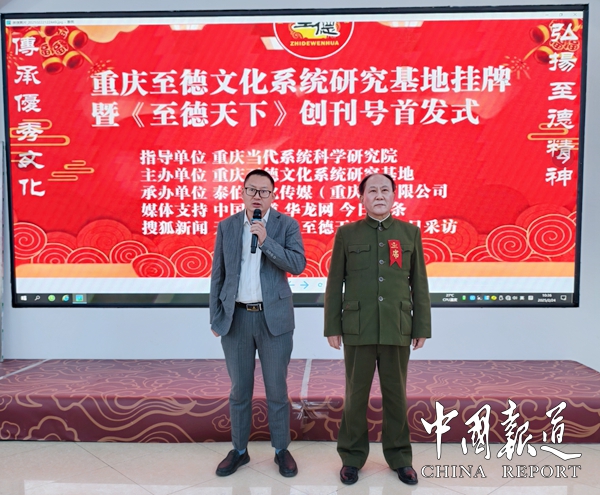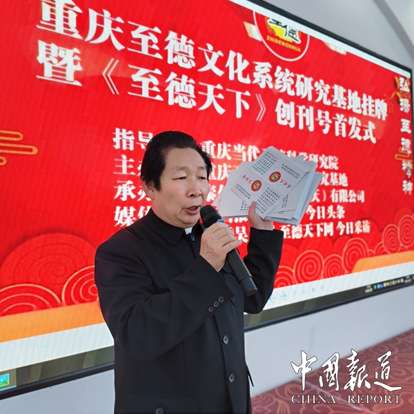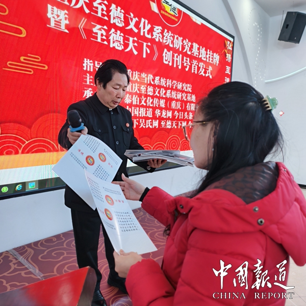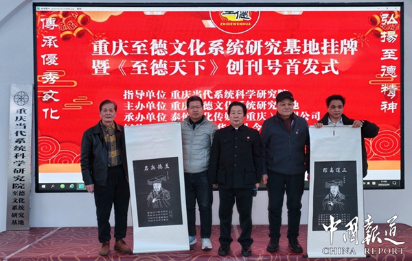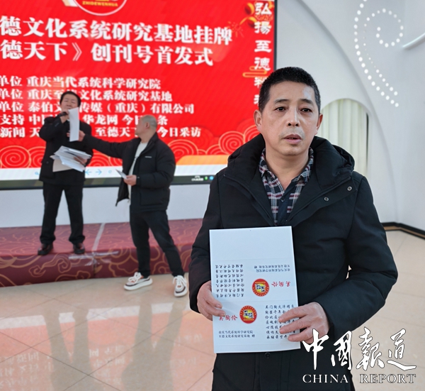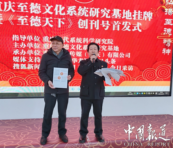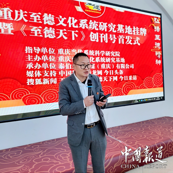 2月24日上午,重慶至德文化系統(tǒng)研究基地掛牌儀式暨至德天下創(chuàng)刊號首發(fā)式在重慶市巴南區(qū)李家沱南仙庭飯店舉行。該基地由重慶當(dāng)代系統(tǒng)科學(xué)研究院于2024年7月批準(zhǔn)設(shè)立(渝系統(tǒng)研究院【2024】2號文件),以貫徹習(xí)近平文化思想為核心,致力于推動中華優(yōu)秀傳統(tǒng)文化創(chuàng)新性發(fā)展與傳播。