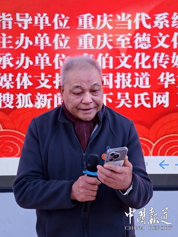 重慶當(dāng)代系統(tǒng)科學(xué)研究院院長創(chuàng)院院長向中致詞,院長向虹宣讀批復(fù)文件,吳猛鴻牛創(chuàng)始人吳利凡,界至德總會副主席?貴吳會主席老?吳臺集團(tuán)董事長吳學(xué)強(qiáng),重慶市報告文學(xué)學(xué)會副會長丁友誠,廣西吳氏文史研究會、廣西吳氏經(jīng)濟(jì)發(fā)展聯(lián)誼會會長吳茂柏,南川區(qū)吳氏聯(lián)誼會會長吳守勇,江西吳氏文史研究會常務(wù)副會長吳啟文受中華吳氏宗親總會主席吳文富委托代表發(fā)言祝賀同時也代表江西吳氏文史研究會致詞,江陰市至德國際旅行社董事長吳協(xié)平,川渝曹氏文化研究會常務(wù)副會長曹繼選等代表先后致詞表示祝賀。