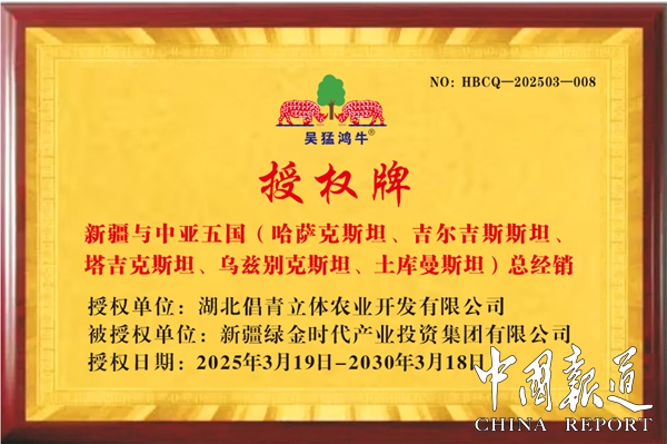 據(jù)授權(quán)書介紹,茲有湖北倡青立體農(nóng)業(yè)開發(fā)有限公司授權(quán)新疆綠金時(shí)代產(chǎn)業(yè)投資集團(tuán)有限公司 為新疆與中亞五國(哈薩克斯坦、吉爾吉斯斯坦、塔吉克斯坦、烏茲別克斯坦、土庫曼斯坦)區(qū)域內(nèi)的商標(biāo)品牌:“吳猛”頭像、“吳猛鴻牛”,品名:吳猛紅牛維生素能量飲料與吳猛鴻牛鐵皮石斛能量飲料、吳猛鴻牛肉蓯蓉黃精能量飲料(鐵罐裝)唯一經(jīng)銷商,授權(quán)時(shí)間從2025 年 3 月 19日至2030年3月18日止。授權(quán)書與簽訂代理合同、訂貨單、轉(zhuǎn)帳記錄同時(shí)存在才生效。