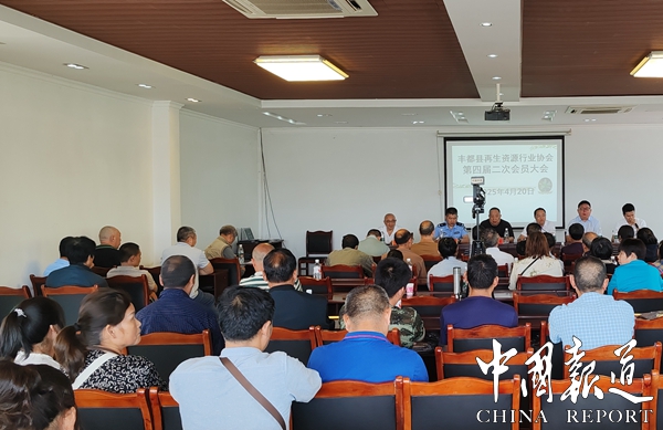 4月20 日,重慶市豐都縣再生資源行業(yè)協(xié)會(huì)在丁莊交易市場(chǎng)二樓會(huì)議室召開(kāi)第四屆第二次會(huì)員大會(huì)。豐都縣供銷社主任楊華、豐都縣縣商務(wù)委書(shū)記隆小波、豐都縣縣生態(tài)環(huán)保局副局長(zhǎng)胡宗華、豐都縣縣公安局江浩等相關(guān)部門(mén)領(lǐng)導(dǎo)參加會(huì)議并先后發(fā)言及協(xié)會(huì)全體理事、協(xié)會(huì)會(huì)員參加本次會(huì)議。