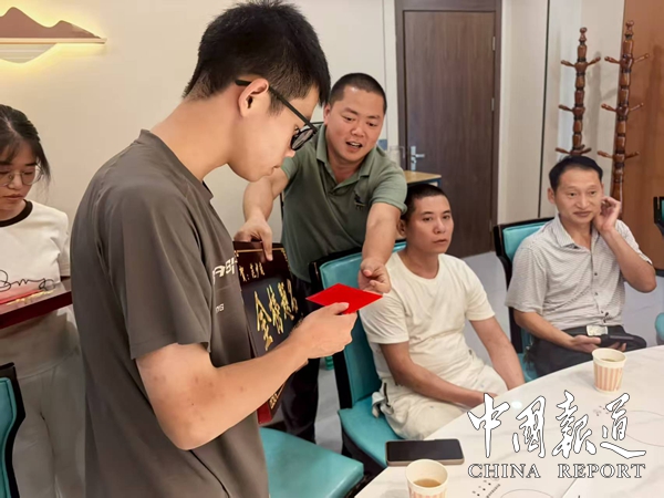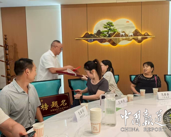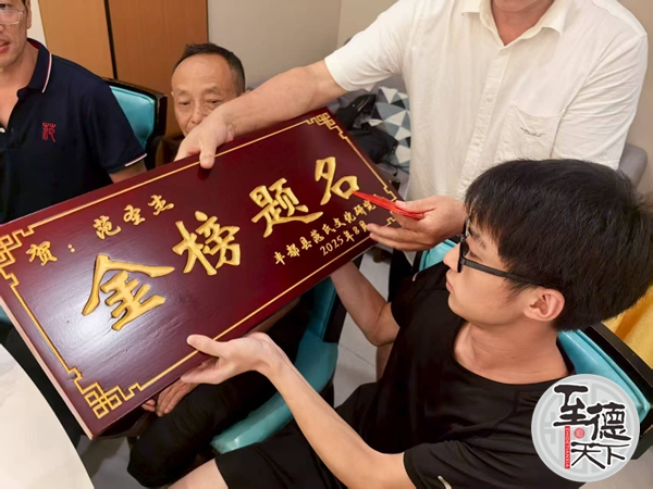 在激昂的禮樂聲中,9名學(xué)子依次登臺(tái)。研究會(huì)為其頒發(fā)特制實(shí)名的“金榜題名”金字木獎(jiǎng)牌;同時(shí)授予分級(jí)現(xiàn)金紅包(最高800元)。一位考入師范院校的學(xué)子緊握紅包哽咽:“宗親們以“劃粥斷齏”方式節(jié)省經(jīng)費(fèi)也要給我們紅包鼓勵(lì),這是族人托付給我的教育薪火,他日必以育才反哺社會(huì)!”