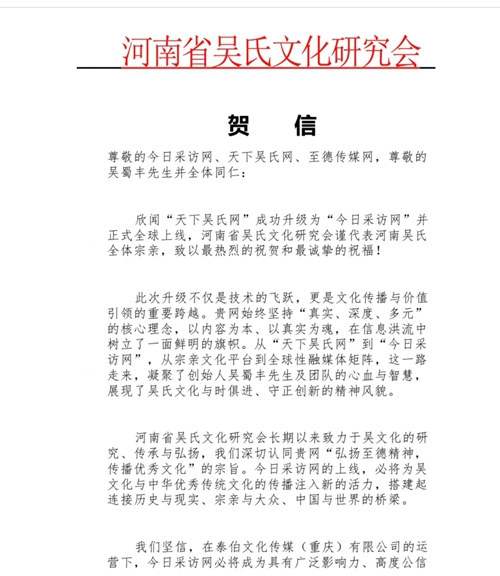 【關(guān)于我們】今日采訪.com?天下吳氏網(wǎng)?至德傳媒網(wǎng)隸屬于泰伯文化傳媒(重慶)有限公司獨(dú)家運(yùn)營的三網(wǎng)合一公益性網(wǎng)站,集官網(wǎng)?APP?自媒體?抖音?視頻號?公眾號同步傳播的綜合性融媒體平臺。