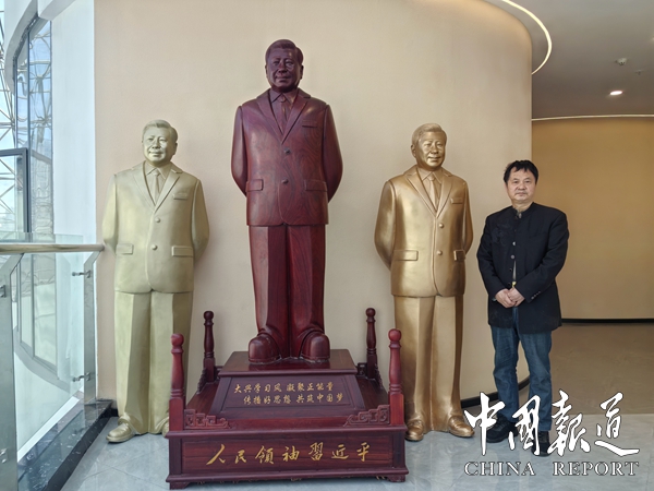 更難能可貴的是,他始終秉持著匠人之心。每一次創(chuàng)作,都要翻閱海量史料,反復(fù)揣摩領(lǐng)袖的言行舉止,力求在細(xì)節(jié)中還原真實(shí)。一刀一鑿,皆是心血的傾注;一紋一理,都藏著對(duì)藝術(shù)的敬畏。正是這份執(zhí)著,讓他的作品超越了單純的塑像,成為承載集體記憶、傳遞精神力量的文化載體。黃選民以匠心獨(dú)運(yùn),為時(shí)代留下了不朽的藝術(shù)豐碑,也讓領(lǐng)袖風(fēng)采在雕塑藝術(shù)中熠熠生輝。黃選民先生用匠心雕琢事業(yè),以領(lǐng)航者的姿態(tài)引領(lǐng)未來(lái),是當(dāng)之無(wú)愧的行業(yè)楷模。(圖文/吳蜀豐)