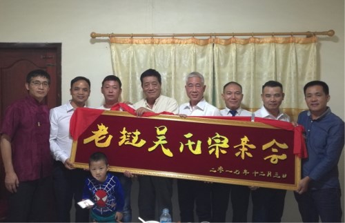 借此機(jī)會(huì),國(guó)庭秘書(shū)長(zhǎng)介紹了2017年11月17至19日代表老撾?yún)鞘献谟H首次參加南陽(yáng)吳氏文化研究會(huì)主辦的統(tǒng)一“三公儀像”揭彩暨《三讓高蹤》發(fā)行慶典的情況。他說(shuō),非常榮幸能夠代表老撾宗親參加。此次盛會(huì)盛況空前,老撾?yún)鞘献谟H會(huì)派員參加為世界吳氏宗親會(huì)增添了新鮮血液。世吳總會(huì)及河南南陽(yáng)宗親會(huì)高度重視,各方面禮遇安排較高。中國(guó)國(guó)家主席習(xí)近平剛剛結(jié)束對(duì)友鄰老撾的國(guó)事訪問(wèn),世吳總會(huì)希望老撾?yún)鞘献谟H會(huì)抱團(tuán)發(fā)展,增進(jìn)與中國(guó)同胞、當(dāng)?shù)厝嗣竦挠押媒煌?,密切與駐在國(guó)政黨和政府的關(guān)系,促進(jìn)中國(guó)與老撾的友誼與合作,借助老撾資源優(yōu)勢(shì)和“一帶一路”戰(zhàn)略,推動(dòng)海內(nèi)外吳氏宗親與老撾?yún)鞘献谟H會(huì)之間的交往與合作,為中老友誼和海內(nèi)外吳氏宗親的合作做出貢獻(xiàn)。