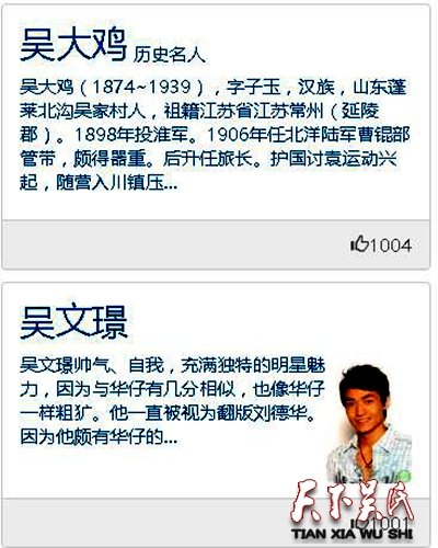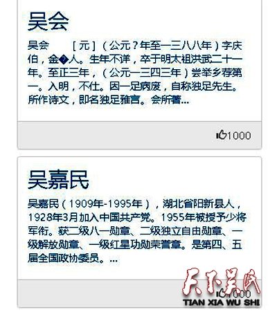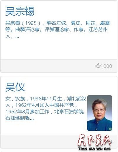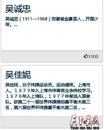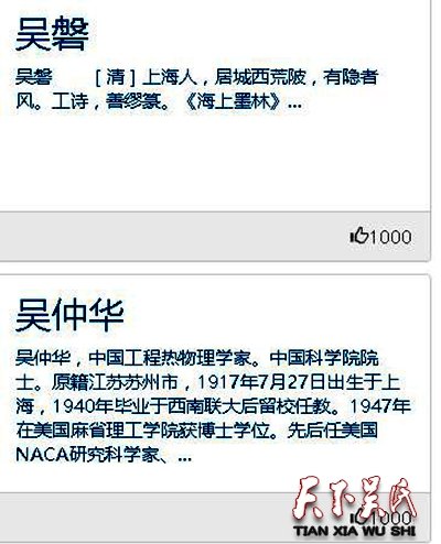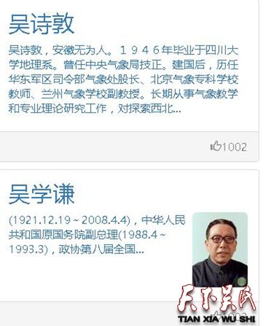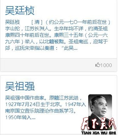 吳姓現(xiàn)代人物:吳邦國、吳伯雄、吳墩義﹑吳官正、吳學謙、吳桂賢﹑吳儀、吳基傳、吳勝利、吳健雄等。