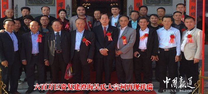 中國報道訊(記者吳蜀豐特約釆編 吳衛(wèi)東 特約通訊員 吳彬)日前,澄海吳氏宗親會,在廣東省汕頭市澄海隆都吳氏大宗祠,舉辦大宗祠復建重光慶典。