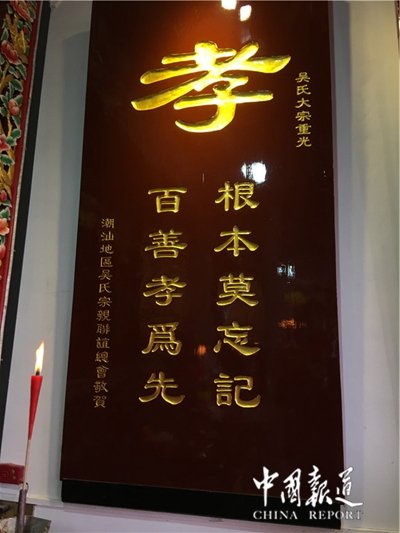 澄海吳氏大宗(祠)于明嘉靖十五年(公元1537年),由粵川公派下先賢籌資興建,距今約四百多年,宗祠供奉始祖粵川公及歷代先祖。堂號為“追遠堂〞,追遠堂三字為朱熹所書。萬歷年間先賢吳殿邦敬贈的《兄弟之邦》牌匾,掛在前堂。大宗祠由于年代久遠,幾易修建,2008年5月,遭雷擊坍塌,成廢墟一片,族人見之心痛。為祟宗敬祖,追根溯源,重建祖祠。在澄海吳氏宗親會的倡議下,在當?shù)攸h政領導的支持下,廣大宗賢族杰鼎力配合,在2014年閏九月15動土,2015年4月開工興建。歷經(jīng)三十個月的建設,于今年十月十六日全部竣工。整個大宗祠總投資六百余萬元。(潮汕吳氏總會)