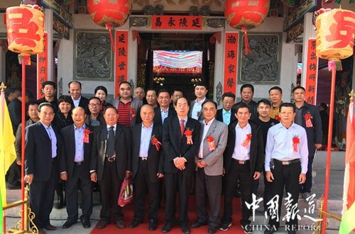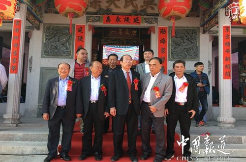 裔孫貫因 九十六人 懇親匯宗 澄海吳姓 緣起宗宇 擇海鄉(xiāng)園 現(xiàn)稱陵海 伏維立廟