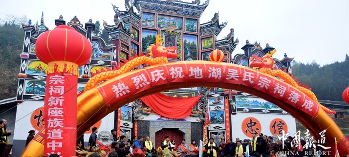 中國報道訊(記者吳蜀豐)耗資上百萬元,歷時1年時間修建的位于貴州省天柱縣境內(nèi)的地湖吳氏宗祠今日(2018年元旦)舉辦祭祀盛典儀式。