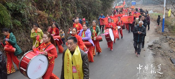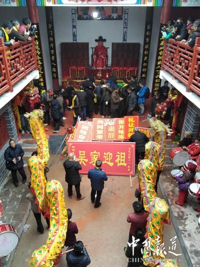 山清水秀、人杰地靈的地湖吳氏宗祠祭祀盛典場面甚為壯觀,永光、永興、江口、中河、橋沖、團(tuán)結(jié)、下德明、長吉(雪洞)、戴家團(tuán)、姑媽團(tuán)。金童玉女持吳氏先祖迎接隊如長龍般陣容、龍獅舞隊、鑼鼓喧天、鞭炮齊鳴、人山人海呈現(xiàn)一片祥和氣象。