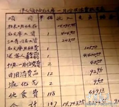 毛澤東還會錢不夠用,難道是他的收入不夠高嗎?吳連登說:“毛主席的工資是404塊8毛,江青的工資是243塊錢,當年來講,工資應(yīng)該來說是高工資了,但是毛主席400多塊錢要負擔一大家子的開支。”賬目來看,毛澤東的開支的確很大,這首先因為他長期背負著沉重的經(jīng)濟負擔。