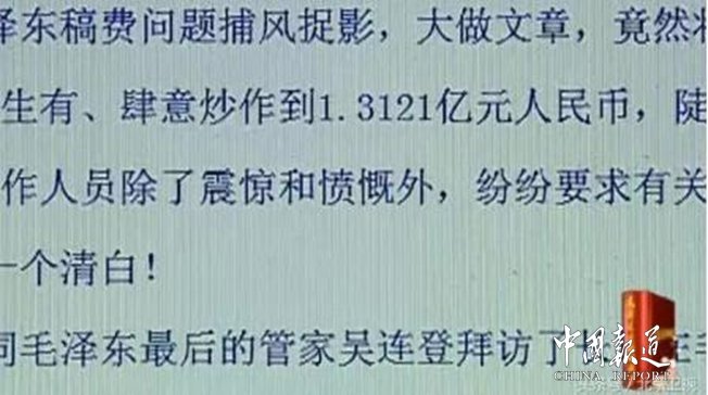 吳連登說:“社會上有人造謠!說毛主席的稿費有1億三千1百萬。我從好幾個雜志上面看到過,我當時看到后心里很不舒服,我就找當年管毛主席稿費的鄭長秋,又找汪東興、又找張耀祠、又找張玉鳳、找吳旭君等,找了很多人。我說,人家造謠,我們有必要出來澄清。如果我們這些人再不講,那白的都讓他都說成黑的了!”這一點毛澤東的賬目足以證實,他的稿費清單即明確記載,1959年底結(jié)存款248689.3元,所謂五十年代即達百萬稿費之說,顯然不實。毛澤東的稿費總額究竟有多少?他又是怎么對待這些稿費的呢?毛主席臨終的時候,稿費是124萬多一點,用在家庭的也只是幾萬塊錢,有些送民主人士,主席的稿費沒有做為遺產(chǎn)留給自己的子女,而是把這些錢歸黨,歸人民了。