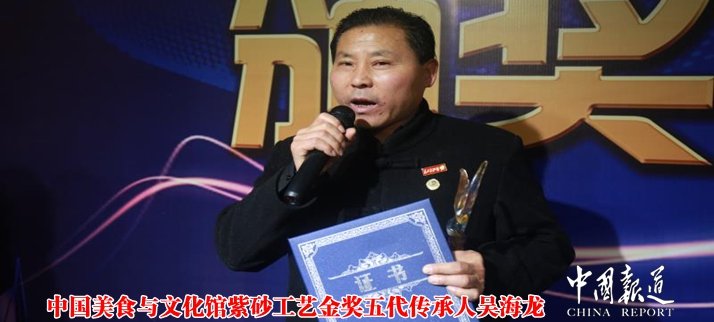 2017年吳海龍大師多年的誠信經(jīng)營,使“吳氏金鼎”首批載入誠信萬里行品牌,他也被譽為:“誠信紫砂藝術家”。中國文化遺產(chǎn)保護院鑒于吳海龍大師對紫砂工藝文化做出的貢獻特授予吳海龍大師“紫砂設計與制作”的傳承人?!稌r代影響力》對吳海龍大師癡迷紫砂設計、研究、傳承的事跡做了詳細報道?!吨袊鴫魰嬎囆g傳承》、《中國城與市長》也對其事跡做了報道。獲得哈薩克斯坦“2017阿斯塔納世博會中國美食與文化館紫砂工藝金獎”的榮譽將吳海龍大師的紫砂工藝帶到了頂峰,不放棄、執(zhí)著的堅守在這里得到了完美的詮釋,一份付出一份收獲,百姓的口碑贏來了今日的金杯。背后的艱辛取得了今日的榮耀,吳海龍大師國人為你驕傲!第二屆全球品牌大會暨第六屆中國品牌年會于2017年12月8日在北京飯店隆重召開。英國皇家東西方戰(zhàn)略研究院院長易思男爵、“絲路文化大使”德國喬治.康斯坦丁王子在會上北京飯店收藏中國工藝美術大師吳海龍創(chuàng)作的紫砂壺,這是吳海龍大師的又一榮耀。
