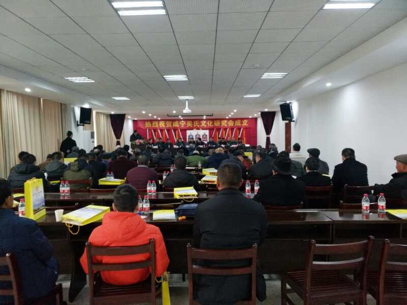 2018年1月6日,經(jīng)過(guò)2年多的籌備, 湖北省咸寧市吳氏文化研究會(huì)成立大會(huì)在咸寧福人醫(yī)工業(yè)園五樓會(huì)議大廳勝利召開(kāi),吳棠斌擔(dān)任會(huì)長(zhǎng)。吳合林、吳小艾、吳鳳勤等人代表湖北省吳氏文化研究會(huì)出席了儀式,來(lái)自咸寧地區(qū)咸寧市、崇陽(yáng)縣、嘉魚(yú)縣、通山縣、通城縣、赤壁市等6縣市各吳氏支系代表,以及其他省市150多人參加成立儀式。