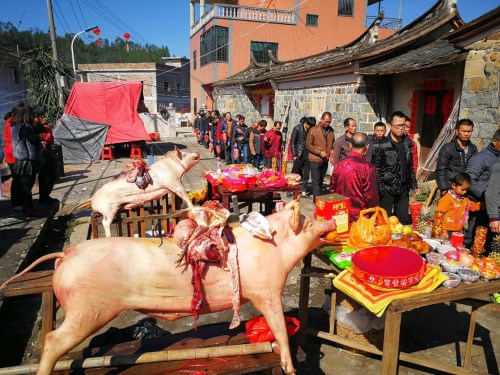 2018年1月10日,同安汀溪鎮(zhèn)造水村鄭宅吳王爺、楊太真人,逢十年一任的做礁日。整個村莊熱鬧非凡,家家戶戶殺雞宰豬,擺出豐盛祭品朝拜各位神明。吳國榮會長攜金武副會長,萬年宗長專程參加盛典。受到鄭宅吳榮真、吳穩(wěn)水等吳氏眾宗親的鑼鼓和鞭炮的熱情歡迎,場面充滿了親情和熱鬧的氛圍。廣東陸豐碣石的鄭宅吳氏裔孫,組織了二十多位宗親專程回祖地參加慶典。國榮會長與廣東宗親進(jìn)行了親切的暢敘和交流。國榮會長一行也來到同安汀溪鎮(zhèn)吳厝宗祠,對宗祠的落成表示祝賀,得到吳仁貴、吳海濱宗長及眾宗親的熱情接待。