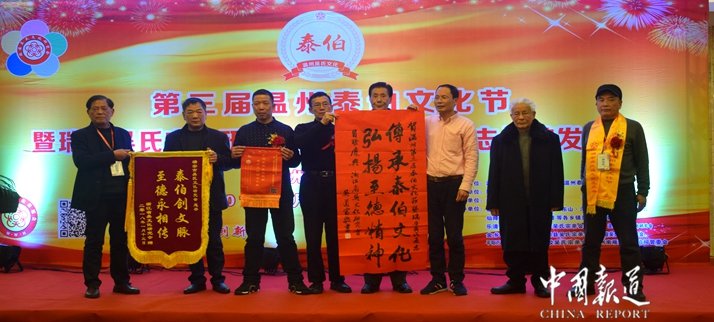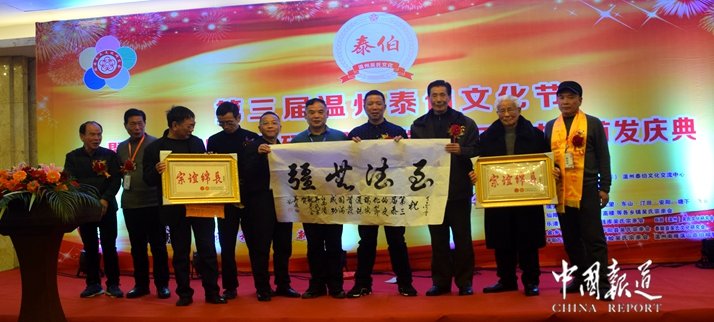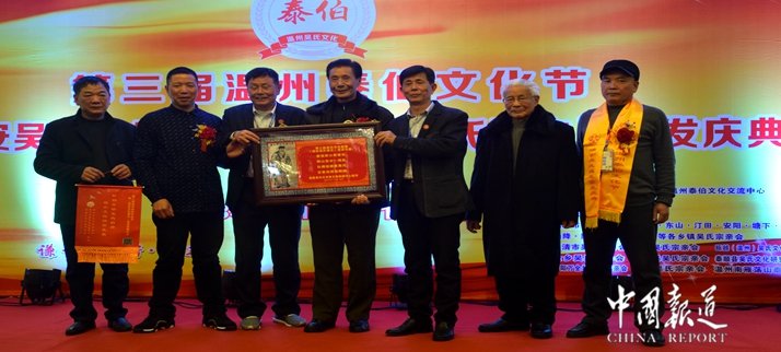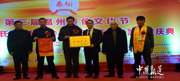 中國(guó)報(bào)道訊(記者吳蜀豐)三讓天下孔子贊,泰伯高風(fēng)曠古今。天下吳氏一家親,吳氏文化共傳承。在今日(1月12)舉行的第三屆溫州泰伯文化節(jié)暨瑞安吳氏文化研究會(huì)《瑞安吳氏通志》首發(fā)慶典歡迎晚會(huì)上,來(lái)自海內(nèi)外華人、華僑及港澳臺(tái)同胞及全國(guó)20省市吳氏宗親參加歡迎晚宴。