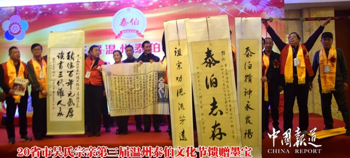 20省市吳氏宗親為第三屆溫州泰伯文化節(jié)饋贈(zèng)墨寶