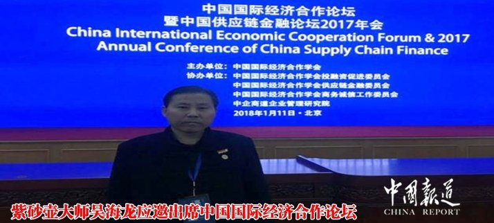 中國報(bào)道訊(記者吳蜀豐)為深入貫徹國務(wù)院辦公廳《關(guān)于積極推進(jìn)供應(yīng)鏈創(chuàng)新與應(yīng)用的指導(dǎo)意見》、商務(wù)部辦公廳財(cái)政部辦公廳《關(guān)于開展供應(yīng)鏈體系建設(shè)工作的通知》等文件精神,由中國國際經(jīng)濟(jì)合作學(xué)會(huì)供應(yīng)鏈金融委員會(huì)主辦的中國國際經(jīng)濟(jì)合作論壇暨中國供應(yīng)鏈金融論壇2017年會(huì),于2018年1月11日下午14:00在中國在全國人大會(huì)議中心禮堂舉辦。中國紫砂壺大師吳海龍應(yīng)邀出席中國國際經(jīng)濟(jì)合作論壇會(huì)議。本次會(huì)議主題為“發(fā)展供應(yīng)鏈金融、重塑全球價(jià)值鏈”,旨在加快供應(yīng)鏈金融體系建設(shè),促進(jìn)供應(yīng)鏈信用服務(wù),推進(jìn)供應(yīng)鏈全球布局。