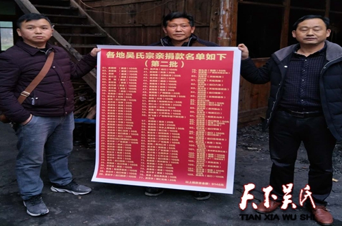 湖南會同縣團(tuán)河吳家團(tuán)吳水平宗親家於2018年元月9日中午,被一把無情的大火燒得精光,嚴(yán)寒已至,春節(jié)將臨,吳水平宗親家遭此大難,真是欲哭無淚,火災(zāi)無情,人有情,天下吳氏一家親,望各地各位宗親伸出援助之手,獻(xiàn)出你的一份愛心,送出你的一份溫暖,幫助吳水平重建家園。