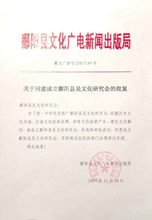 熱烈祝賀鄱陽縣吳文化研究會黨支部獲批