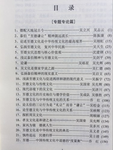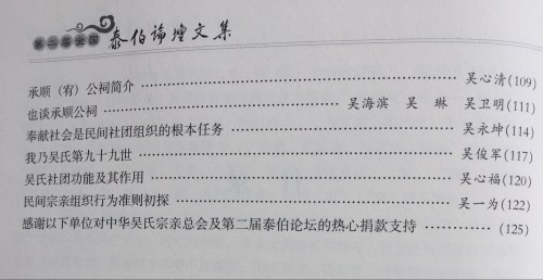 全國(guó)首屆“泰伯論壇”于2014年在吳氏祖居地?zé)o錫舉行,至今已歷三屆。三屆“泰伯論壇”擬定三個(gè)主題,匯集了三本《泰伯論壇文集》。每一本文集的建樹,都代表著組織者、參與者的水準(zhǔn)與境界,凝結(jié)著他們的汗水與智能。在此,我們向前三屆的組織者、參與者,致以誠(chéng)摯而崇高的敬意。