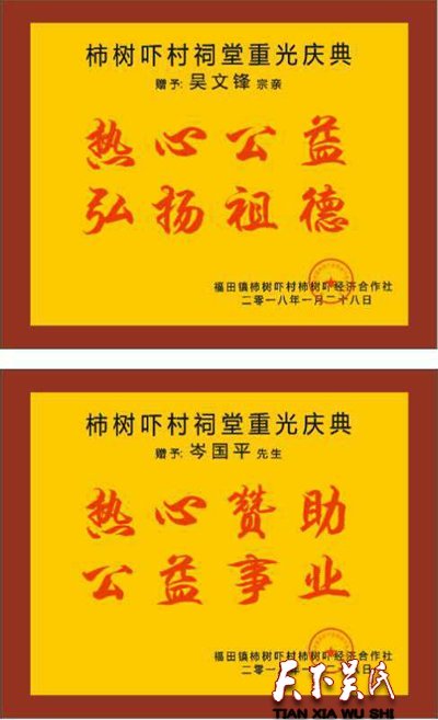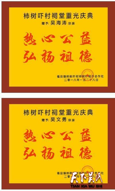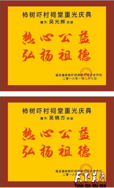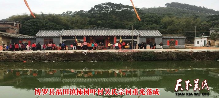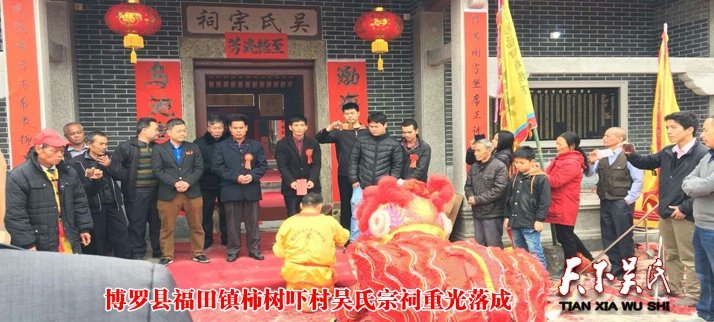 天下吳氏網(wǎng)訊(特約采編吳昌祿)2018年1月28日,廣東惠州博羅縣福田鎮(zhèn)柿樹嚇吳氏宗祠落成重光志慶,珠三角吳氏宗親總會(huì)組團(tuán)參加慶賀。柿樹嚇吳氏宗祠歷史悠久,由于年久失修,廣大吳氏宗親紛紛建議重建宗祠。在此背景下,福田鎮(zhèn)柿樹嚇村長吳光輝牽頭組織下,成立籌建委員會(huì),發(fā)動(dòng)廣大宗親集資捐款。于2017年中秋后興建,2018年1月落成重光,歷時(shí)八個(gè)多月,投入資金九十多萬元。